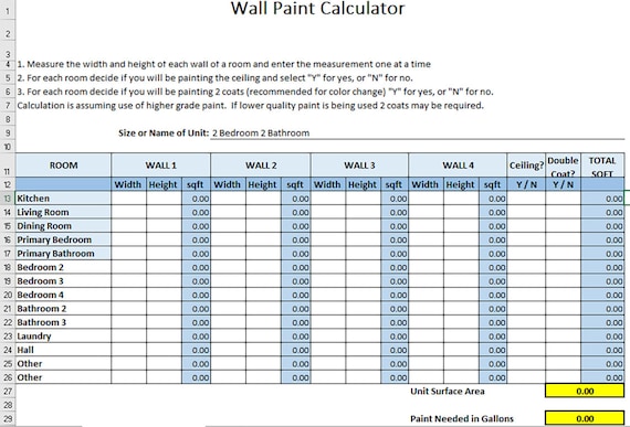 Paint Calculator Excel Paint Calculator Property Management Apartment Management Paint Maintenance Student Housing Turn Etsy